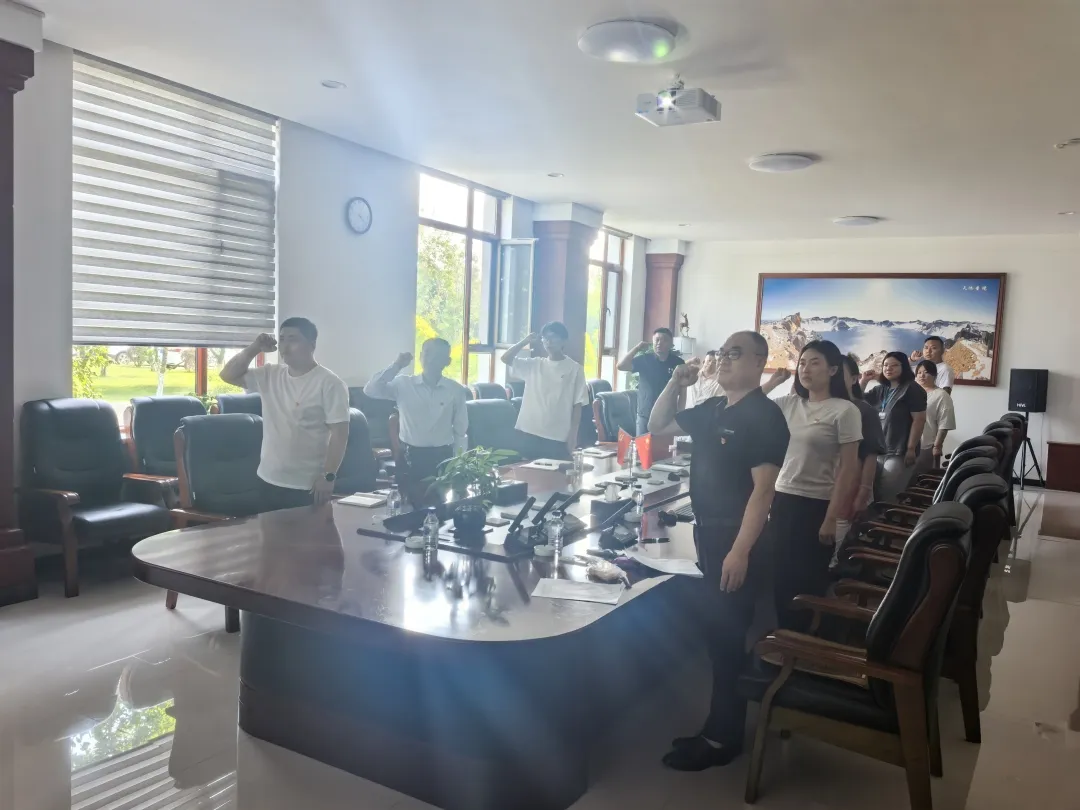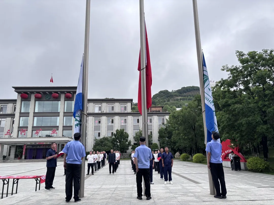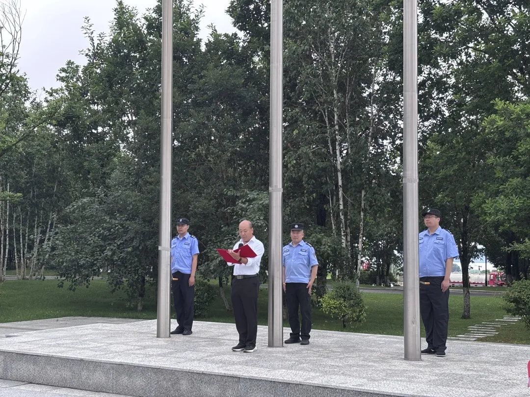 支部党员、中层干部整齐列队,庄严肃立向国旗行注目礼。本次护旗展示方队由支部青年党员组成,体现了新一代三河员工的优秀精神风貌。
